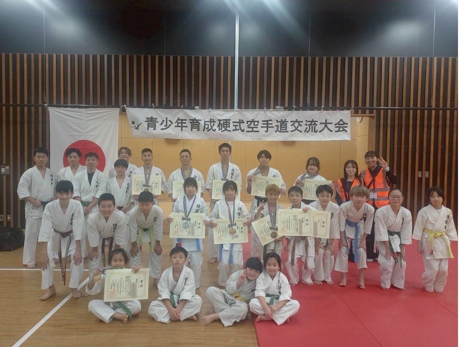・田名中…小学生(緑から茶帯)、中学生、高校生(宮川師範代、村上指導員長、浅沼技術指導長)
